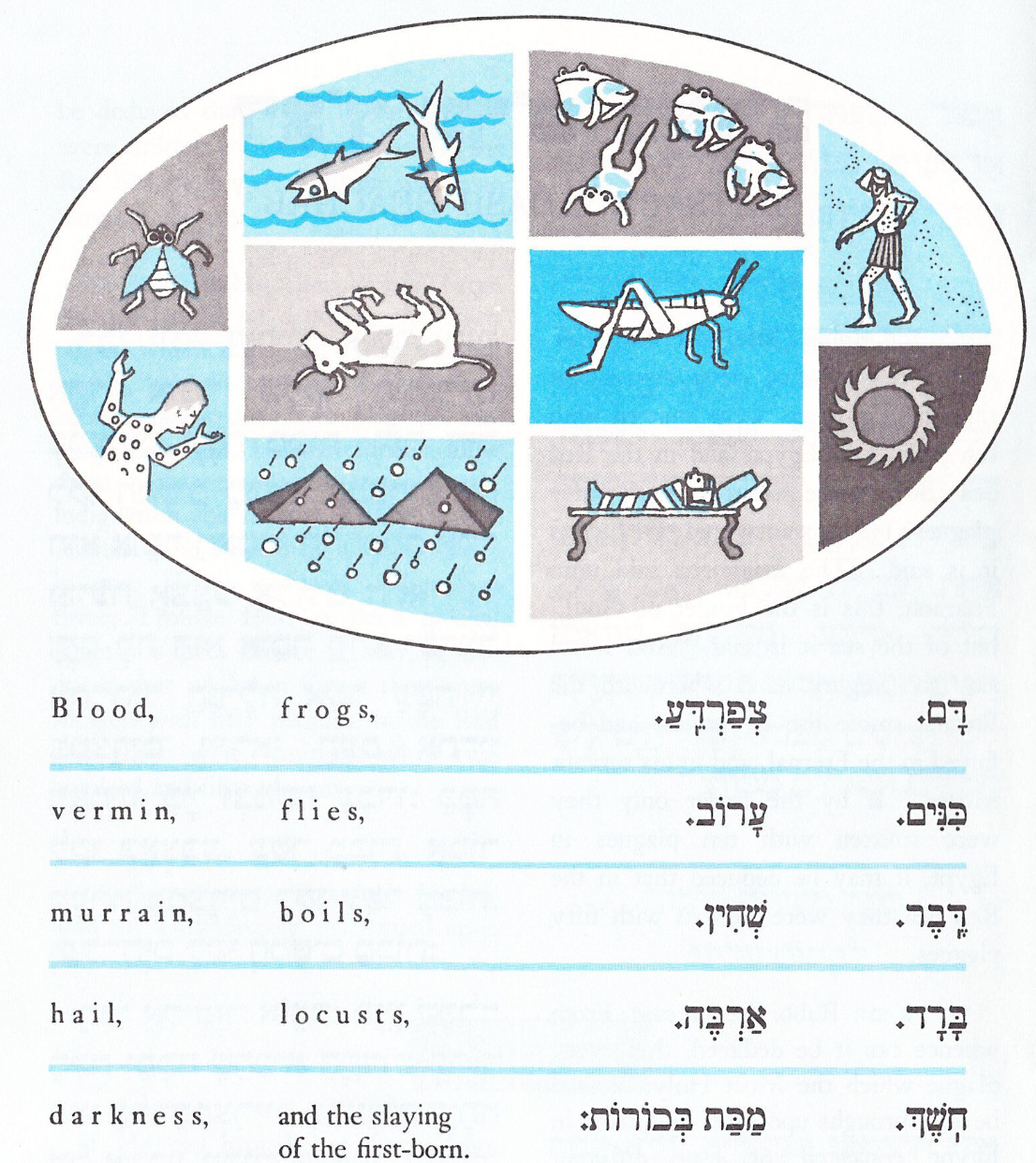 To persuade the Pharaoh to let the slaves go, Moses warned him that plagues would befall the Egyptians. It was only after the ten plagues that the Pharaoh agreed to free the Jews. As we recite the names of the plagues, we remove a drop of wine from our glasses for each plague. This practice reminds us not to be happy when our enemies suffer.